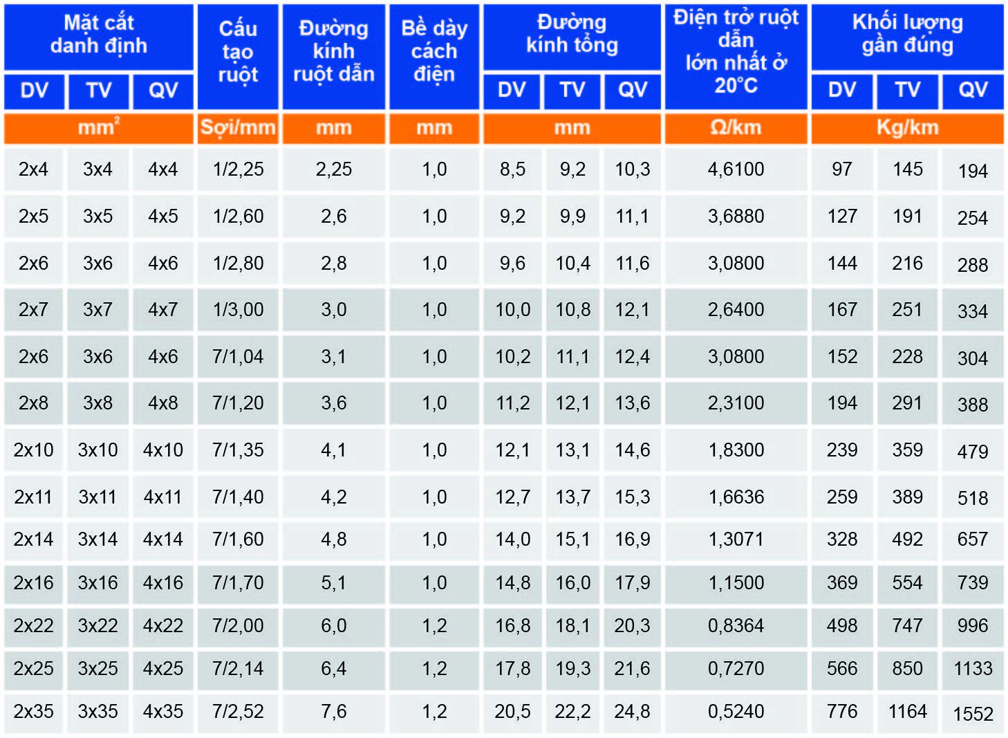Dây và cáp hạ thế cách điện PVC