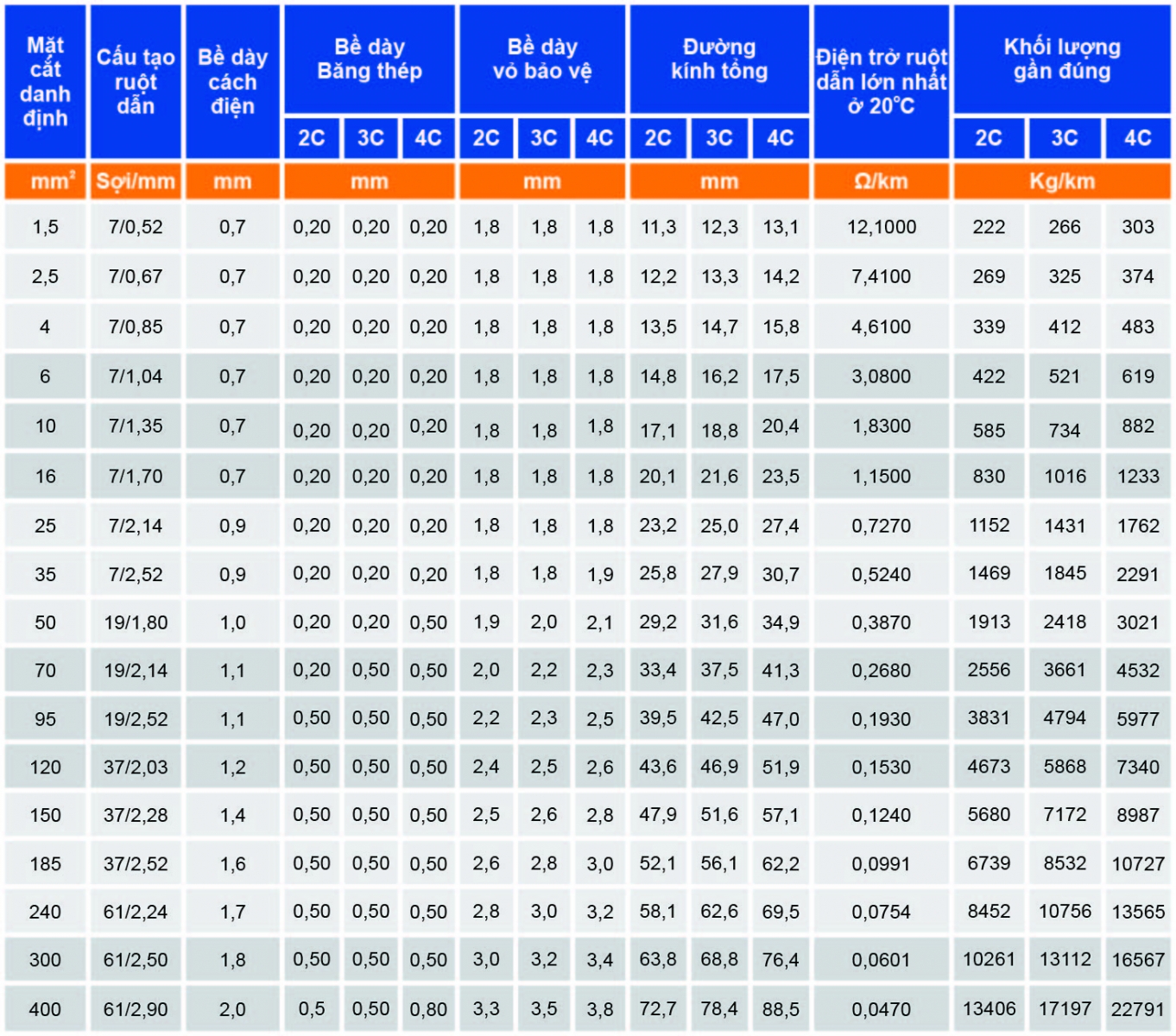 CÁP ĐIỆN LỰC 2,3,4 LÕI GIÁP 02 BĂNG THÉP